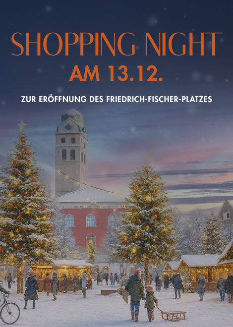 Am 13.12. feiern wir die Eröffnung des Friedrich-Fischer-Platzes mit einer langen Shopping Night, bei der Sie in unserem Haus sowie in umliegenden Geschäften in Erding bis 21 Uhr gemütlich bummeln können.